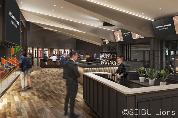 2021年3月にバックネット裏にできた新エリア。アメリカン・エキスプレス プレミアム エキサイト® シート、ブッフェエリア、バーエリアの3エリアからなり、総収容人数は483人、広さも約1,000㎡です。