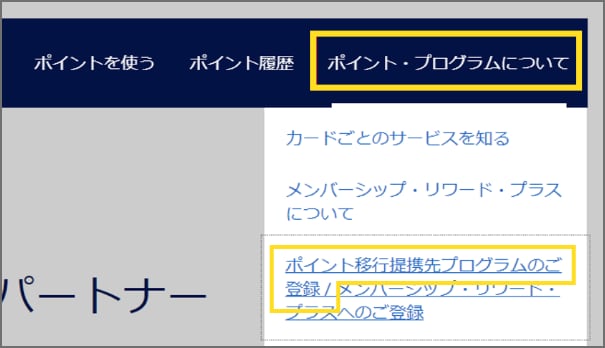 「ポイントプログラムについて」タブを選択し「ポイント移⾏提携先プログラムのご登録」を選択