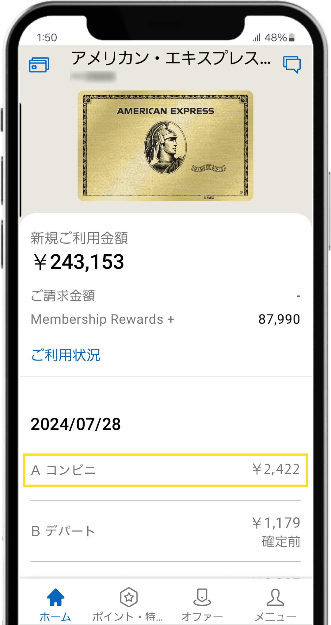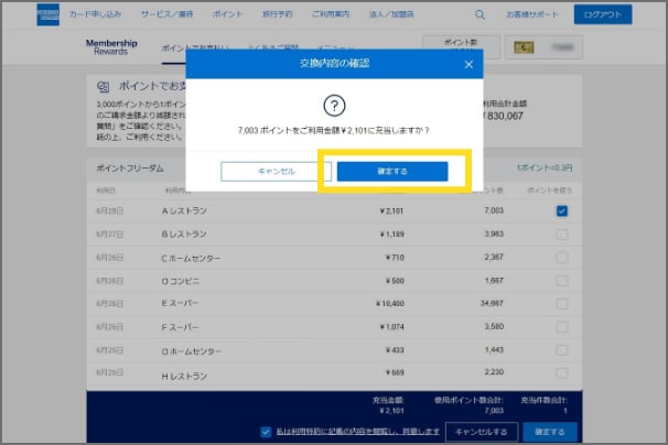 カードの利用明細に表示されるカードご利用代金に、メンバーシップ・リワード®のポイントを充当する方法や、ポイントの交換レート、ポイントの充当タイミングなどを紹介します。