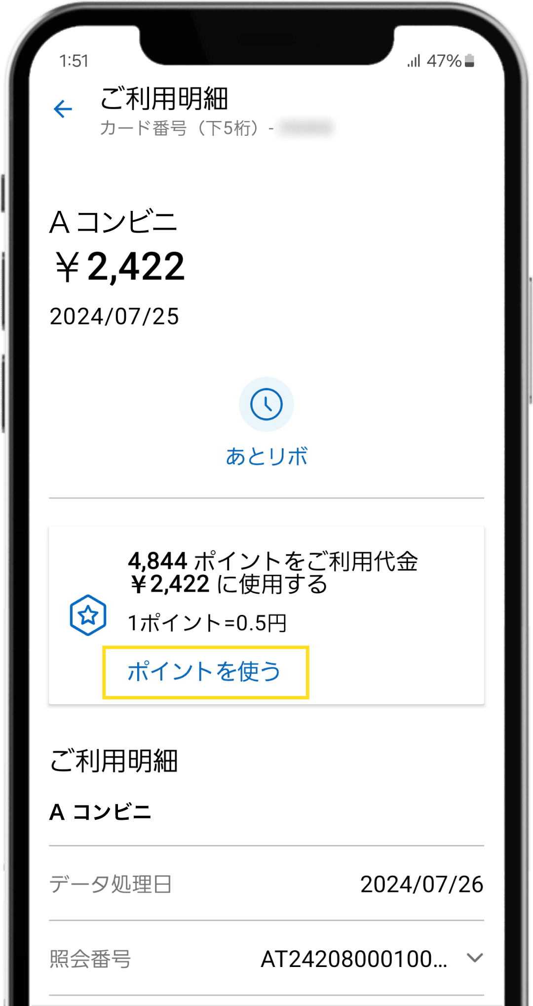 - 加盟店の登録状況により、1ポイント=0.5円と表示される場合があります。カード裏面のお問い合わせ先までご連絡ください。