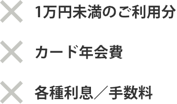 ×1万円未満のご利用分 ×カード年会費 ×各種利息/手数料