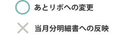 請求確定後(締め日の後)にあとリボに変更した場合、変更分の金額が当月口座振替金額から差し引かれ、次回ご利用代金明細書からリボ払いの請求が開始されます。