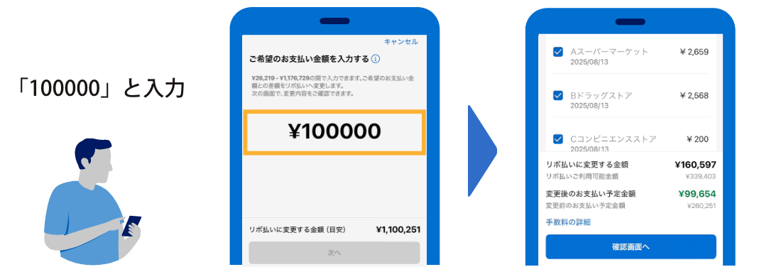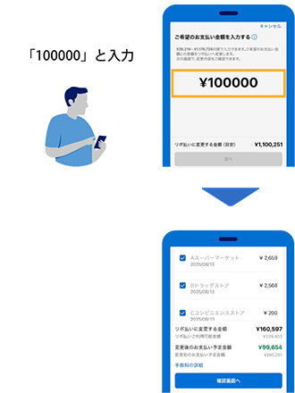 たとえば、次回のお支払い金額を約10万円に調整する場合のご利用方法をご案内します。