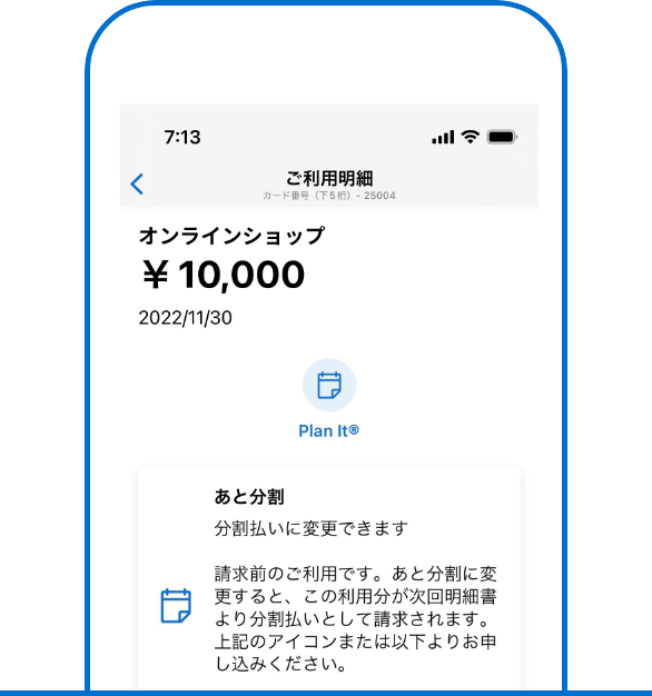 アプリで分割払いにしたいご利用分をタップするだけでゆとりあるお支払いに。