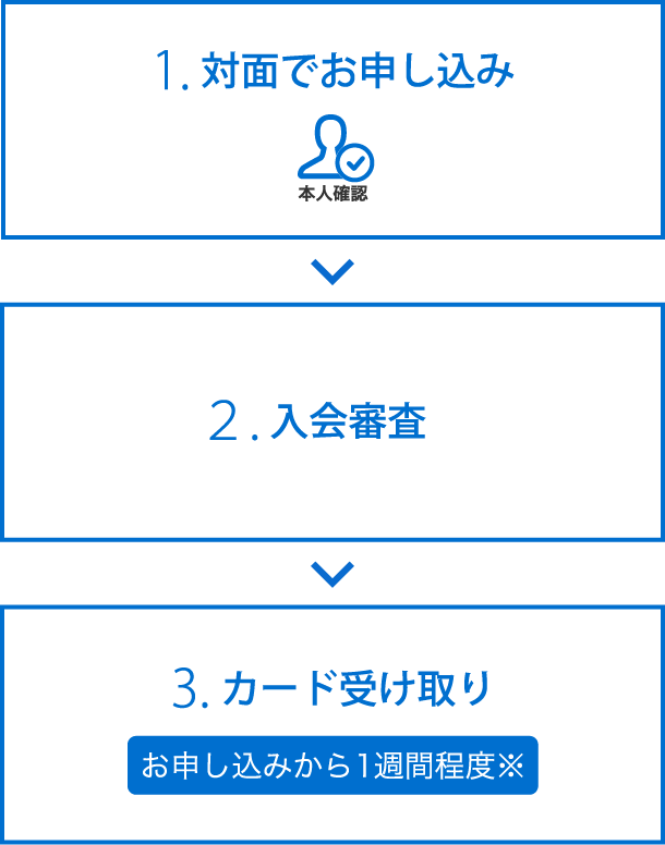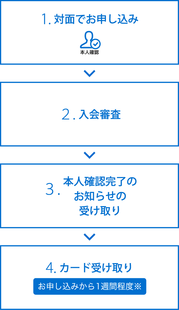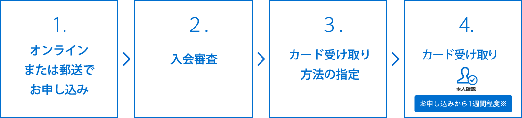 • ※入会審査の途中で本人確認が完了した場合は、普通郵便または簡易書留郵便でお届けします。