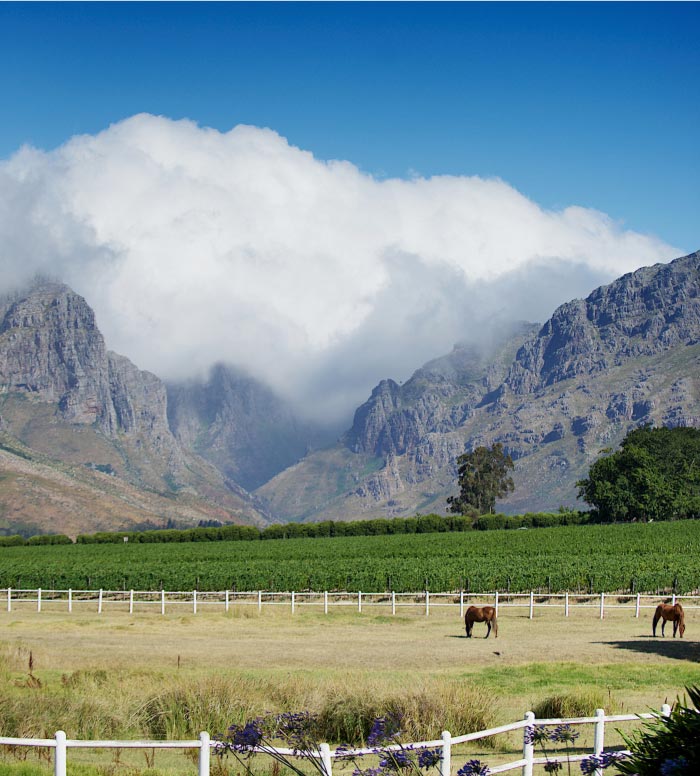 南アフリカのケープワインランド地方に位置するこの山々に囲まれたエリアは、美食とワイン愛好家にとっての理想のデスティネーションです。「クライン・ゲーデルスト(Klein Goederust)」をはじめ、約50軒のワイナリーでは、この地域の特産品種である「ピノタージュ」や「シュナンブラン」を中心とした試飲体験が楽しめます。