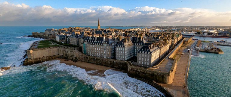夏が最も良い旅行シーズンですが、 9月や晩春もおすすめです。白砂のビーチからピンク色の花崗岩の崖が続く海辺のハイキングコース(「GR34トレイル」など)を歩いたり、リゾートの町「ディナール(Dinard)」や中世の城壁都市「サンマロ(Saint-Malo)」、また受賞歴のあるレストランが自慢の 「レンヌ(Rennes)」や、手描き陶器で有名な「カンペール(Quimper)」などの内陸部の都市も訪れてはいかがでしょうか。