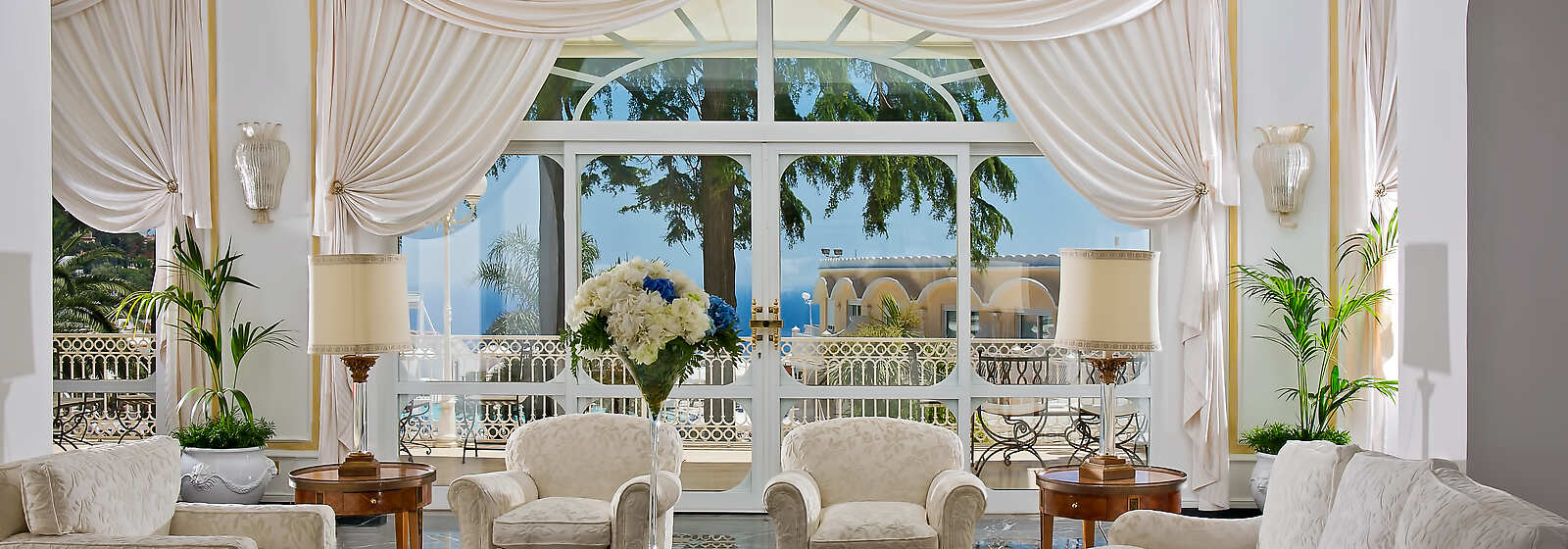 時代を超越した客室とスイートには、金と真鍮のアクセント、象嵌の木とタイル、職人の手による調度品があしらわれています。屋内のリビング エリアやプライベート テラスから、絵のように美しいカプリ島の活気ある風景をお楽しみいただけます。大理石のバスルームには大型のウォークイン シャワーが設置され、豪華なアメニティが備えられています。