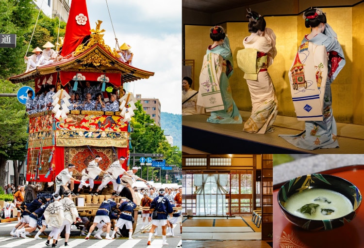 京都の夏を彩る祇園祭を、とっておきのおもてなしとともに楽しめる2つのプランをご用意。山鉾巡行のハイライト「辻廻し」をカード会員様だけの特等席で堪能できるプランと、歴史ある京町家で、祇園甲部の芸舞妓の京舞や民俗学者による祭にまつわるお話などが楽しめるプラン。両プランにお申し込みいただけます。