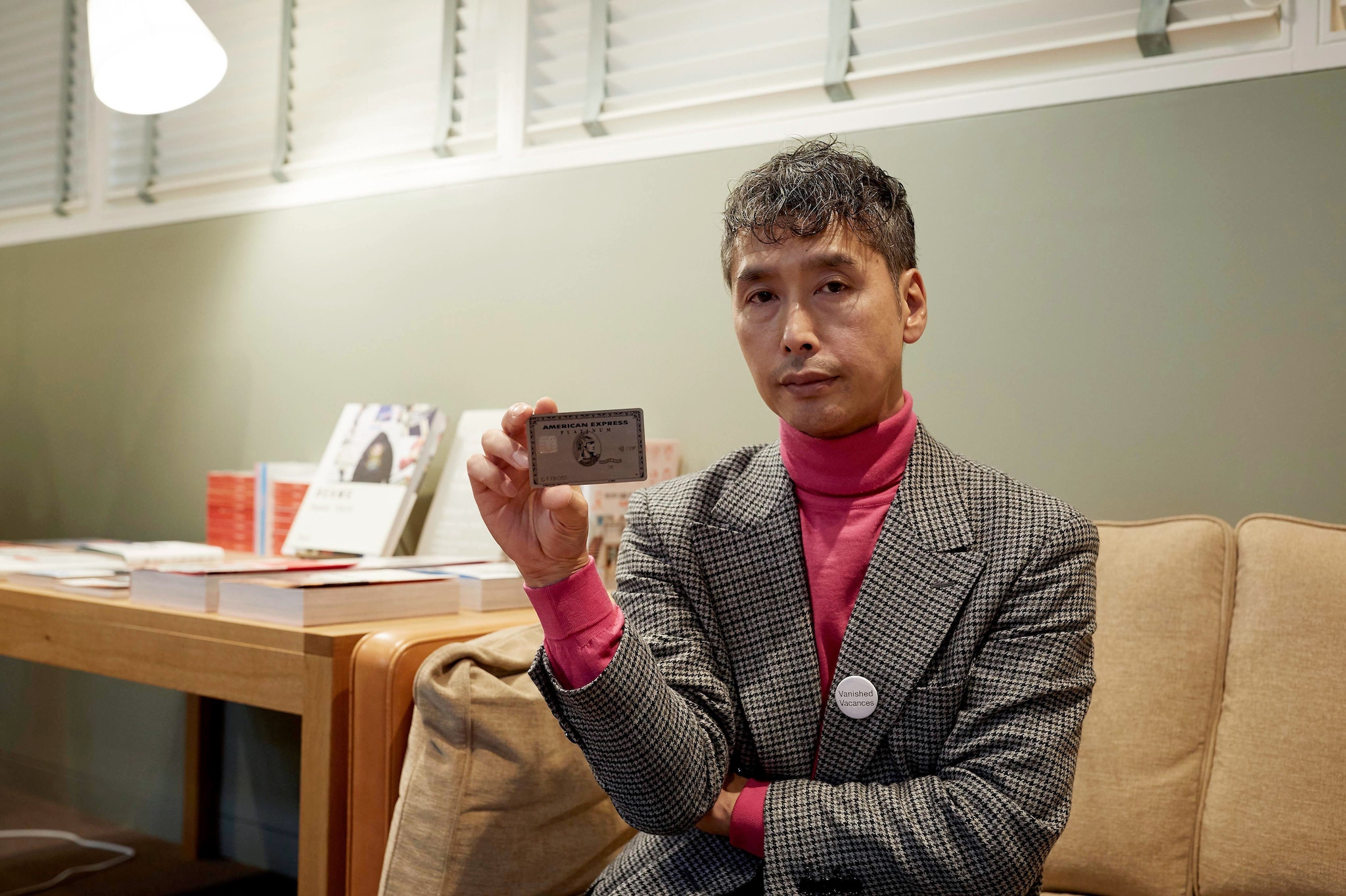 青野氏に新しくなったメタル素材の「プラチナ・カード」を手にとってもらう。 「色や形よりも、手に持ったときの重みがいい」と話す。心が動くのは、メタルならではの「ウエイト感」だ。「前時代的な顕示的主張がなく、シンプルなのに重みがある。手にした瞬間に感じられる“存在感”がいいですね。抑制の効かせ方にプラチナ・カードの品格を感じます」。いいものは、物そのものが魅力を語る。押し付けがましいのは苦手なので、と笑う。