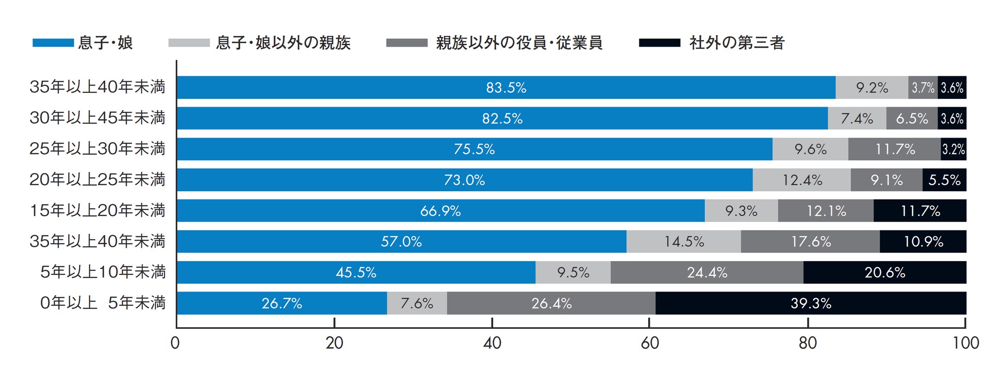 近年は「社外の第三者」による承継が4割近くに増加
