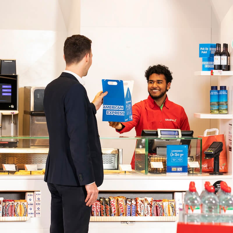 Lounge On the go is toegankelijk via de Amex Experiences App. Ga naar de app voor de deelnemende ophaallocaties per luchthaven en meer informatie.