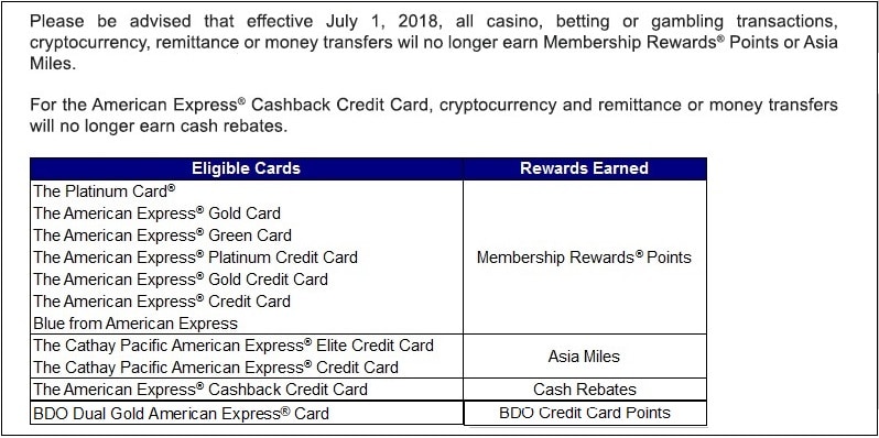 Excluded Transactions in Earning Membership Rewards® Points, Asia Miles or Cash Rebates