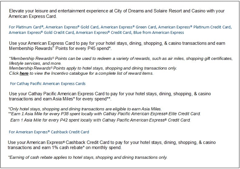 Payment Acceptance at City of Dreams Manila and Solaire Resort and Casino