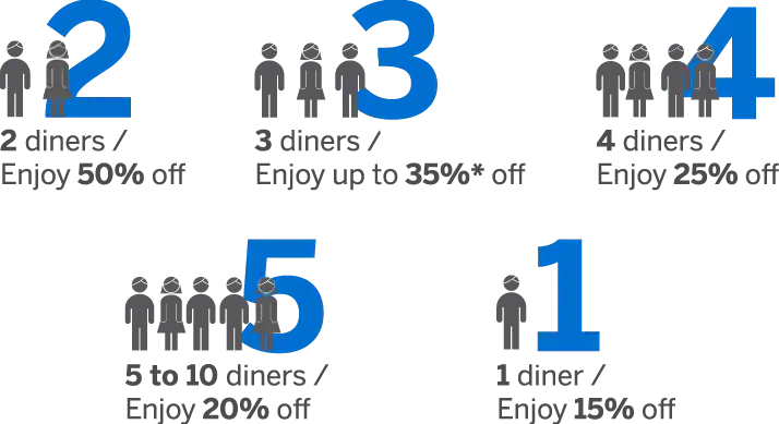 Enjoy great savings of up to 50% off on your food bill all year round*